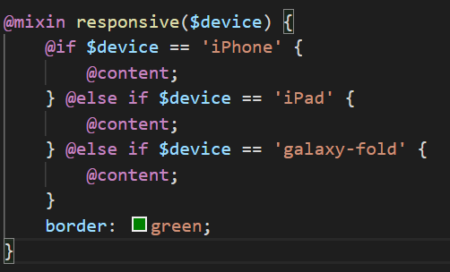 - mixin에서 @content를 쓰면 mixin을 가져다 쓰는 곳에서 스타일을 정의할 수 있음
