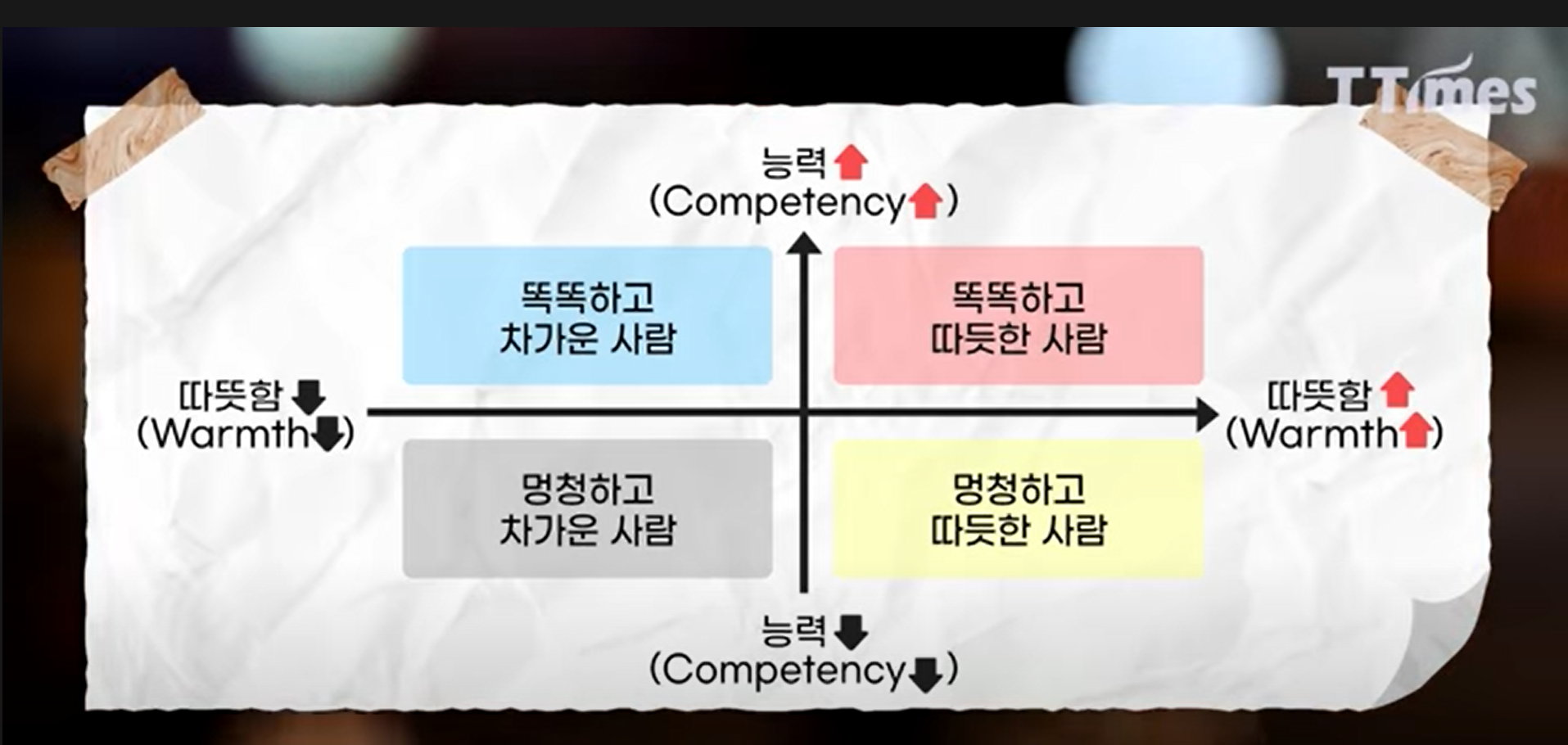 - 사회학자 왈 일반적으로 사람들은 사람을 평가할때 따뜻한지, 능력이 있는지를 본다고 한다.