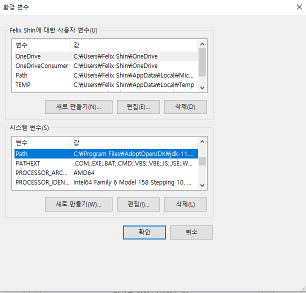 2) PC내 환경변수 설정