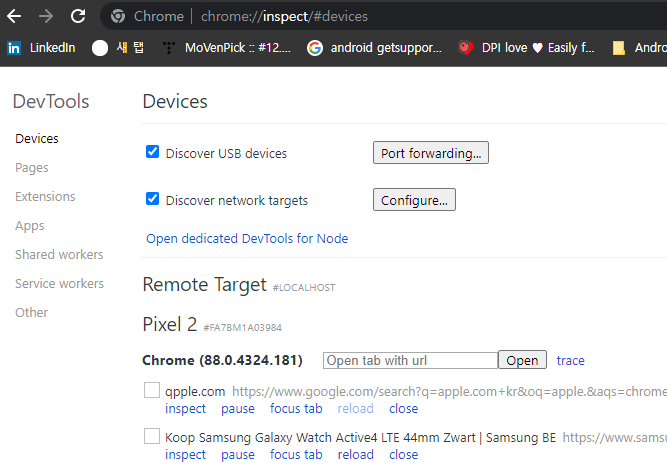 1) Chrome 주소창에 chrome://inspect/#devices 라고 입력