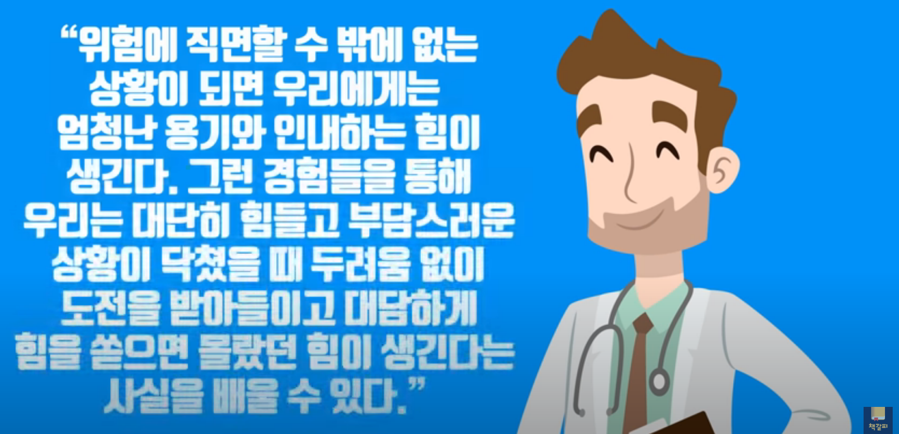: 위험에 직면하면 우리는 엄청난 용기와 인내의 힘이 생기고, 그 상황을 극복할 수 있다.