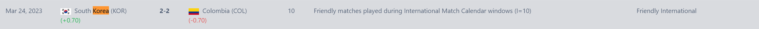 콜롬비아가 피파랭킹 17위, 한국은 25위라 비겨서 0.7점을 획득하였으나,