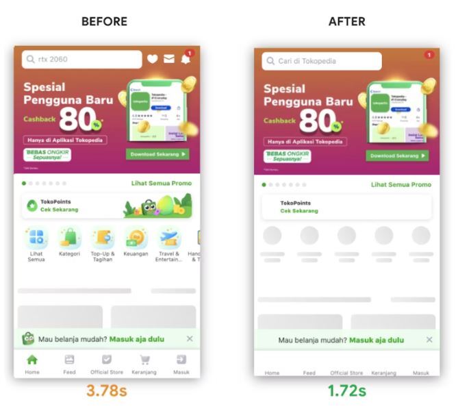 인도네시아 최대 전자상거래 회사인 Tokopedia는 LCP를 약 55% 감소 시킴에 따라 평균 세션 시간(Average Session Duration)이 23% 증가했습니다.